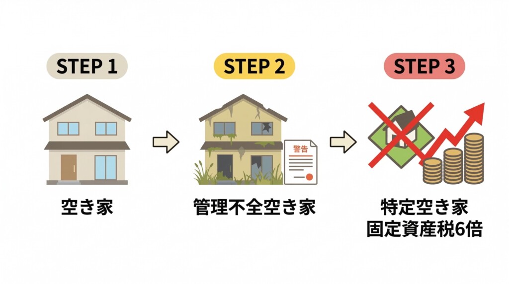 さらに恐ろしいのが、2023年末に施行された空家対策特別措置法の改正です。 この改正により、特定空き家になる一歩手前の「管理不全空き家(窓ガラスが割れている、雑草が繁茂しているなど)」に指定され、勧告を受けた場合でも、固定資産税の優遇措置が解除(実質6倍に増税)されるようになりました。現在(2026年)においては、「まだ家が傾いていないから大丈夫」という油断は命取りになります。